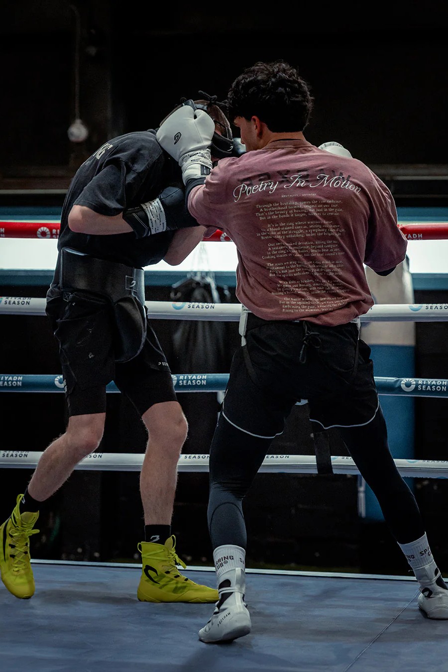 На фото в черном Эзра - профессиональный боксер в тяжелом весе ростом 188 см, размер одежды L.